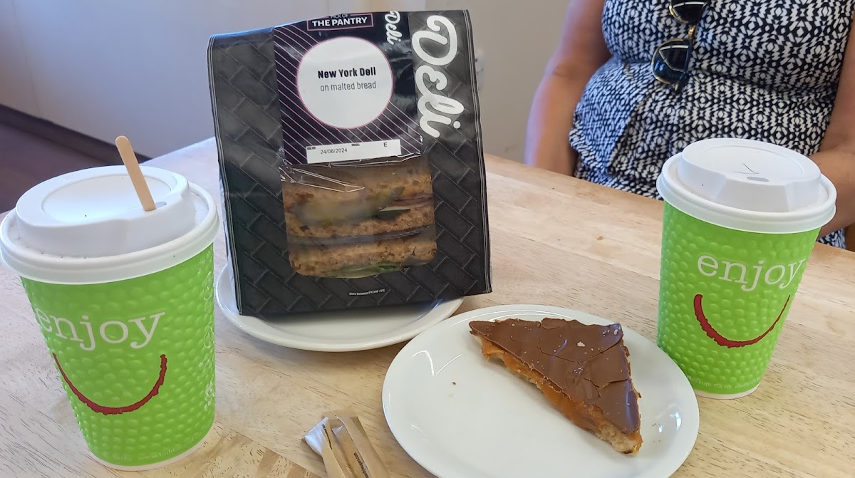 Pretty good cafe, the cakes they have are really good. The pre-packed sandwiches etc are just the same as a supermarket but more expensive. The coffee is decent, they also have plenty of ice lollies etc for sunny days.