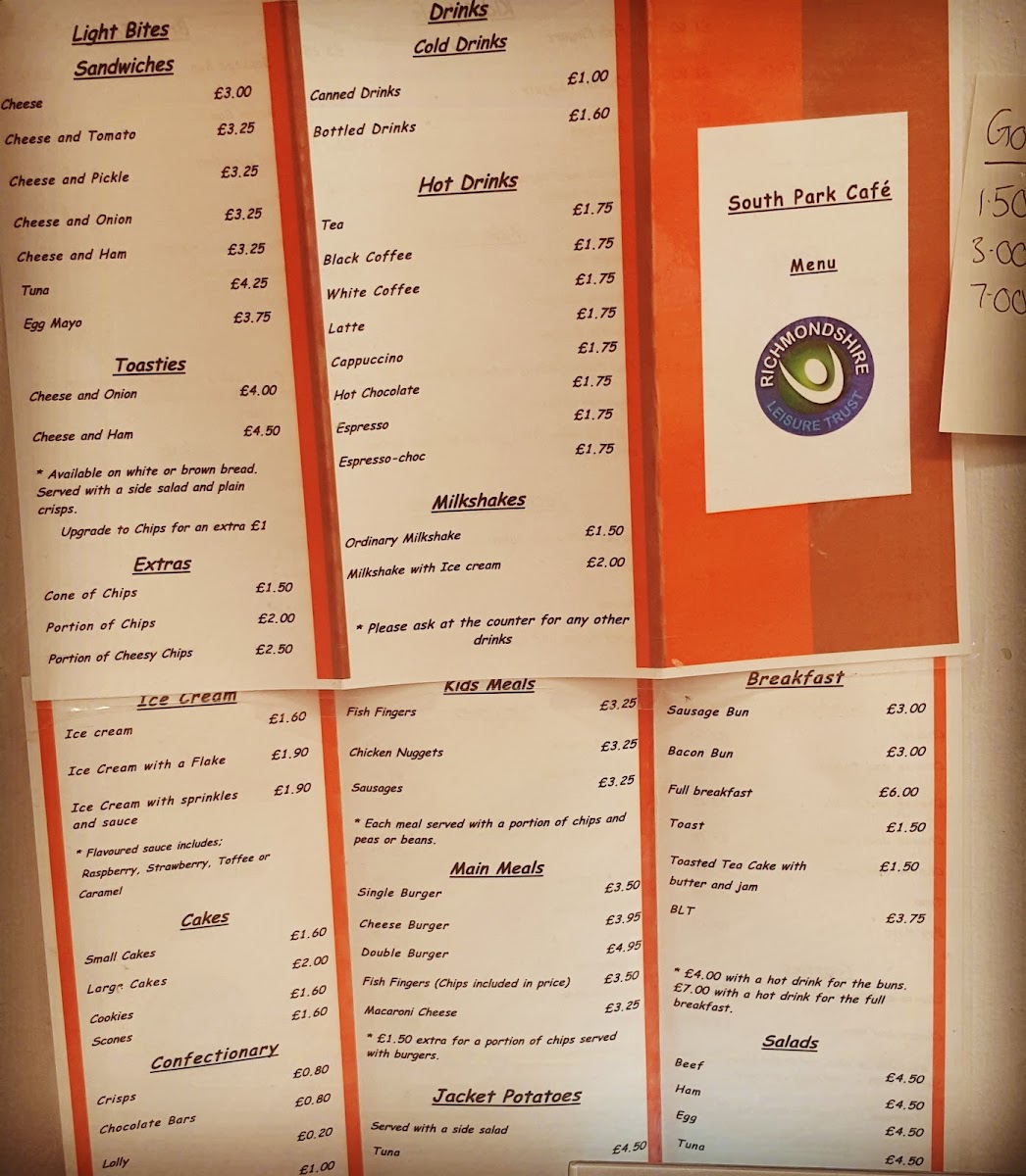 Welcome to South Park Cafe, a charming spot nestled in the heart of South Park, Darlington. This delightful cafe offers a cozy atmosphere, perfect for enjoying a light bite or a warm drink after a stroll in the park. The menu features a range of sandwiches such as Cheese and Tomato or Tuna, along with toasty options like Cheese and Ham. The beverage selection includes tea, espresso, and inviting lattes to satisfy your coffee cravings.